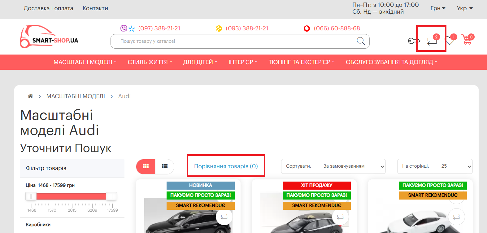 4. На двох фото товарів натискаємо іконку "Порівняти