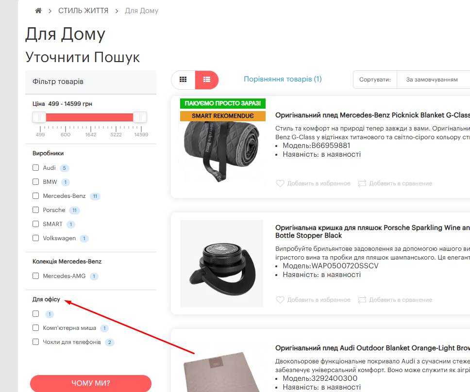 Фільтр не відповідає обраній підкатегорії "Для дому"