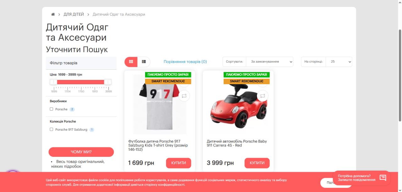 Actual Result: На сторінці "Дитячий одяг та аксесуари" серед товарів є дитячий автомобіль