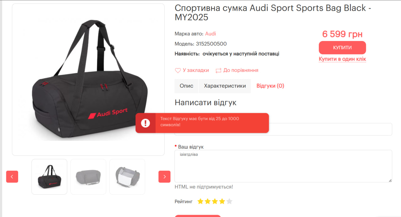 5) Написати відгук з довжиною менше 25 або більше 1000 символів