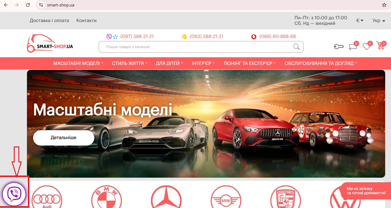 Очікуваний результат: Відбувається перехід на сторінку, що перенаправляє в додаток Viber