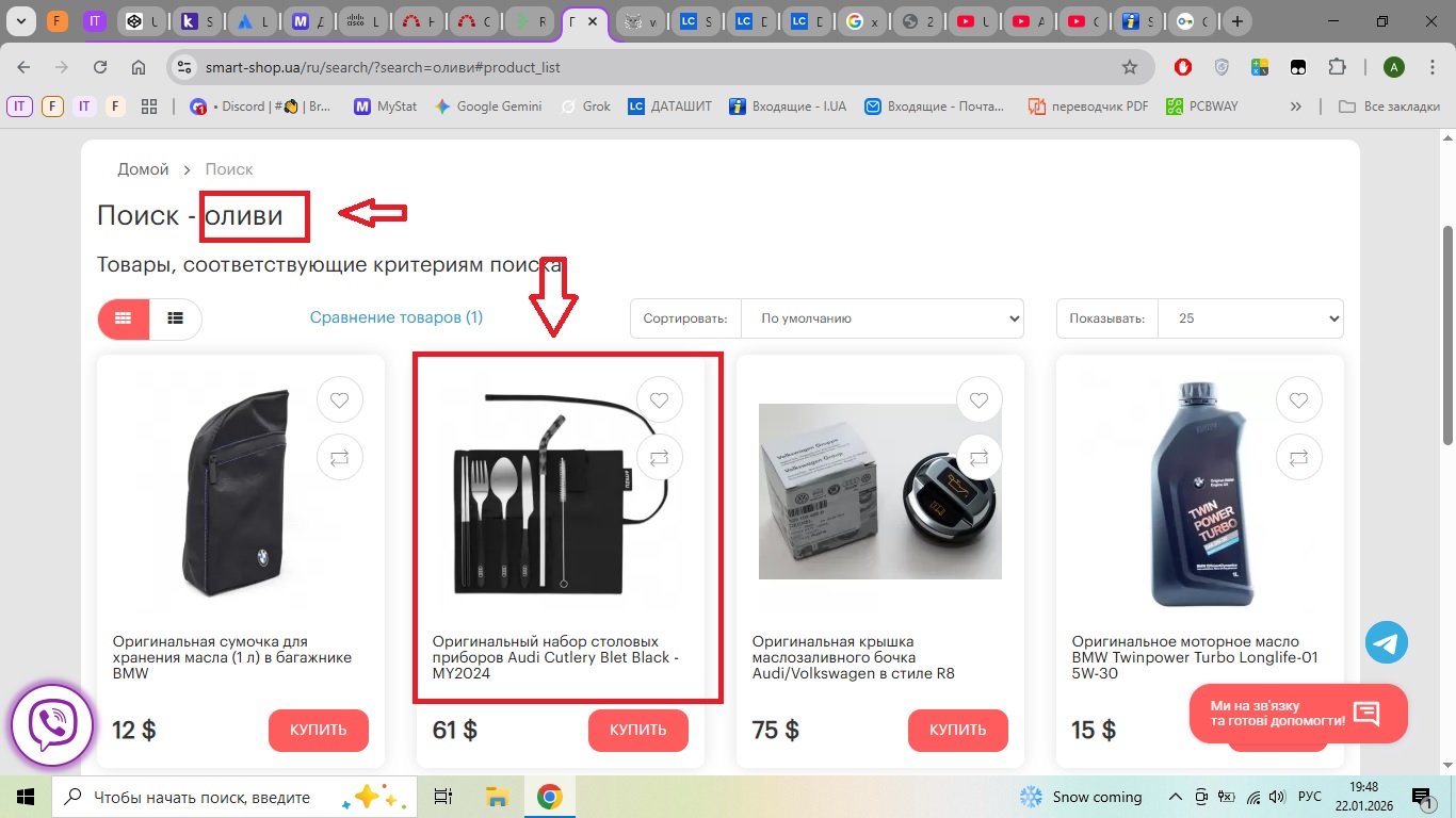 3 В поисковой строке написать слово: "Оливи" и произвести поиск товаров