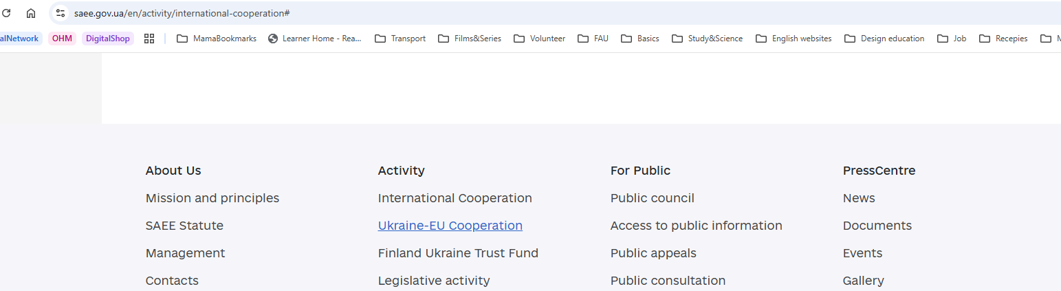 Посилання підрозділу "Ukraine-EU Cooperation" повертає на будь-яку попередньо відкриту сторінку