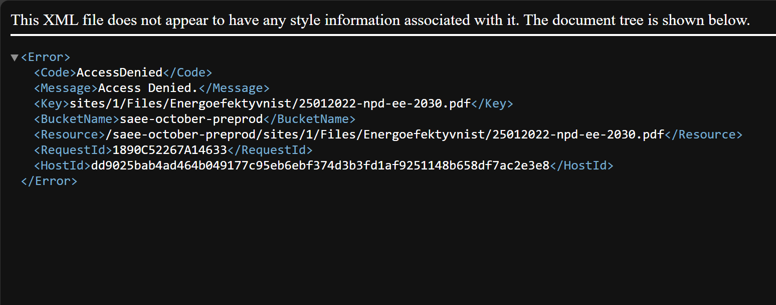 Actual result: При натисненні на посилання "Національний план дій з енергоефективності на період до 2030 року" відкривається файл формату XML, в розділі "Діяльність", підрозділах "Енергоефективність" - "Національний план дій з енергоефективності на період до 2030"