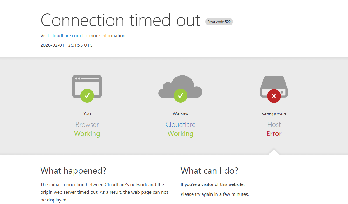 Actual Result: сайт не загружается, открывается ошибка 522