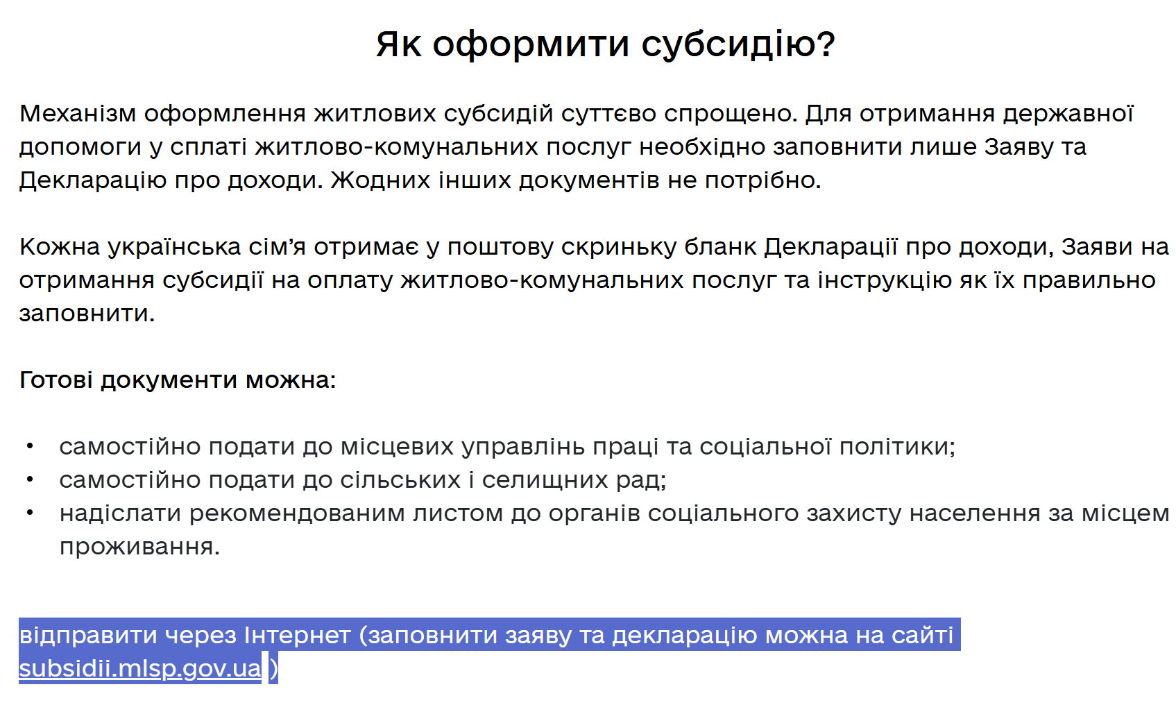 5.Прокрутити сторінку до статті "Як оформити субсидію?"