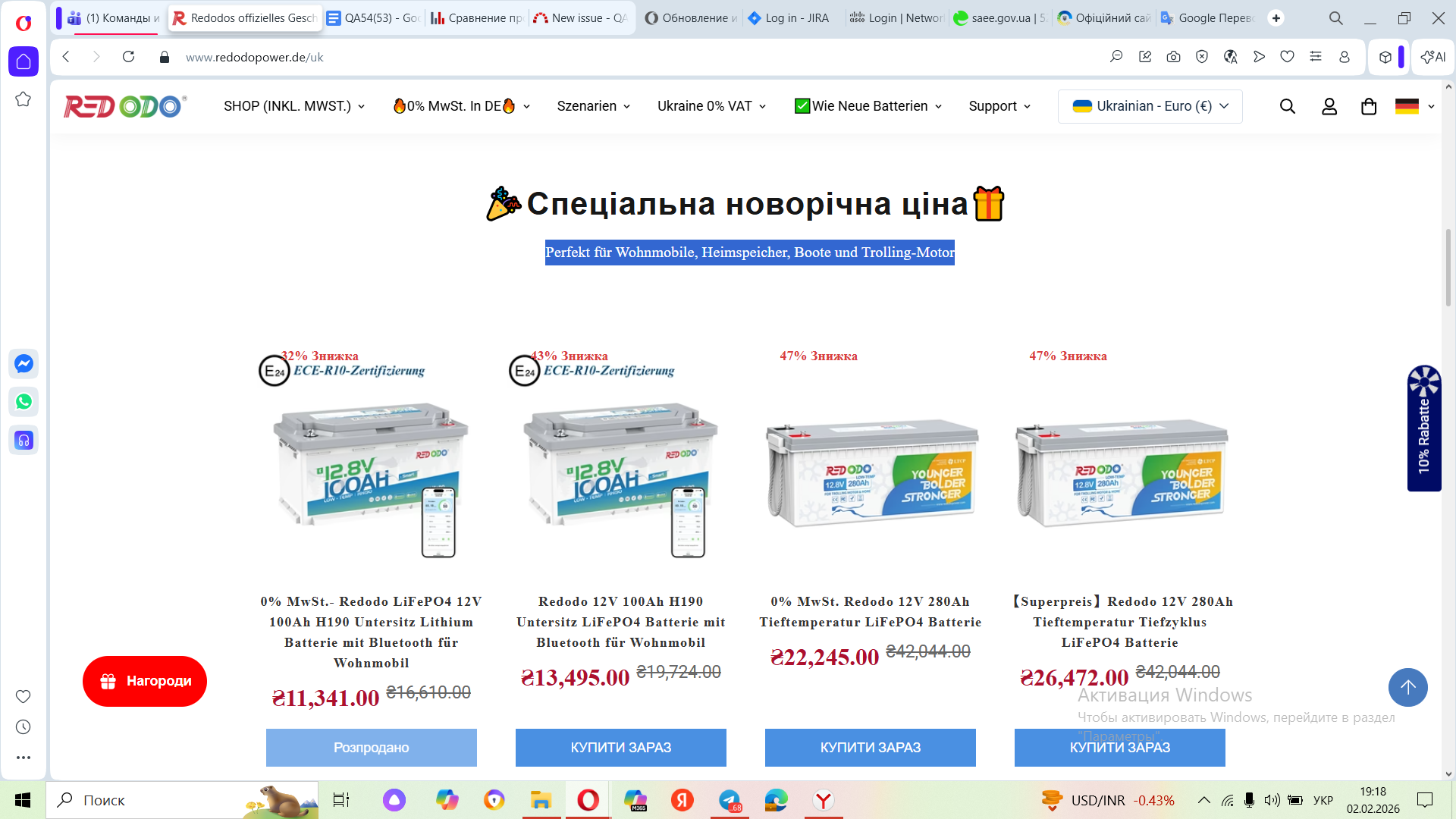 Actual result: Фраза "Perfekt für Wohnmobile, Heimspeicher, Boote und Trolling-Motor" не перекладається відповідно обраній українській мові в баді сайту.