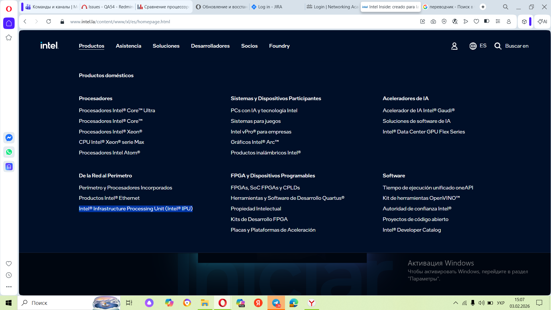 Actual result: Назва підрозділу "Intel® Infrastructure Processing Unit (Intel® IPU)" розділу "De la Red al Perímetro" не перекладається при обраній іспанській мові.