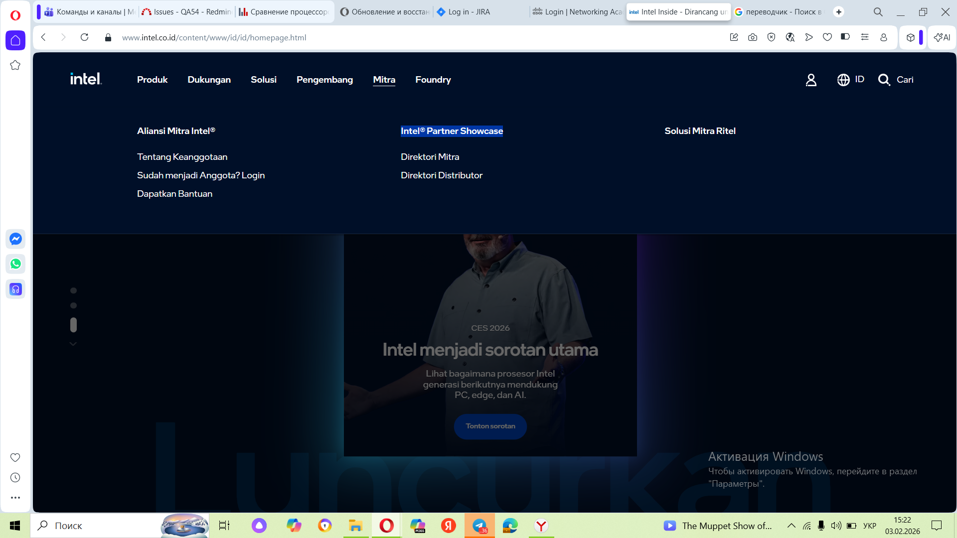 Actual result: Назва розділу "Intel® Partner Showcase" не перекладається при обраній індонезійській мові в хедері сайту.