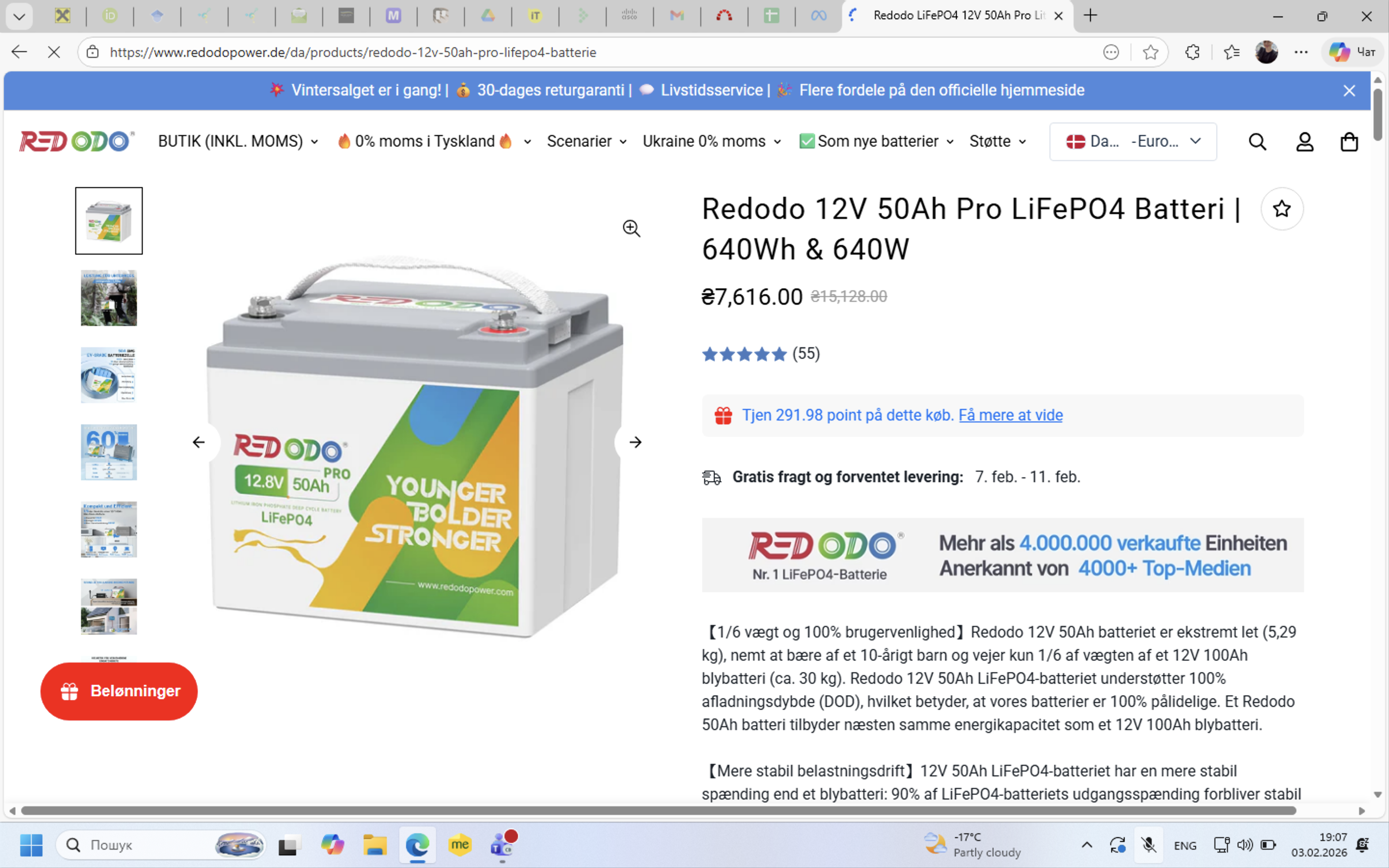 1) На головній сторінці сайту https://www.redodopower.de обираємо мову данську і валюту євро