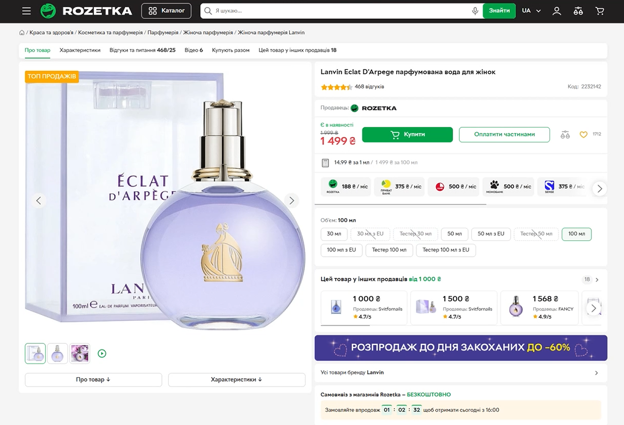 Ссылка на пример товара: https://rozetka.com.ua/ua/lanvin-eclat-darpege-parfyumirovannaya-voda-dlya-zhenshchin/g16037891/