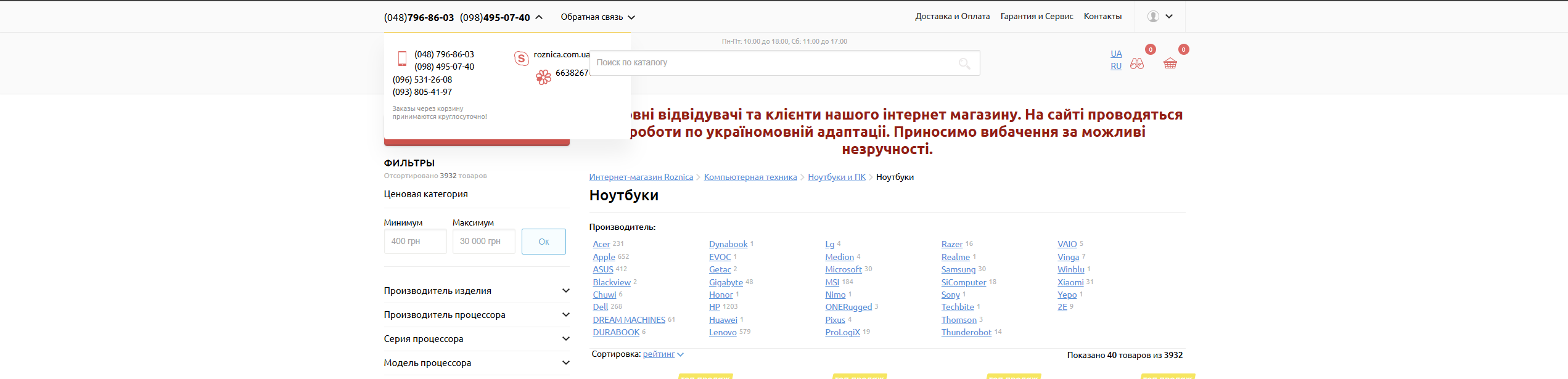 1) Відкрити посилання на сайт: https://www.roznica.com.ua/