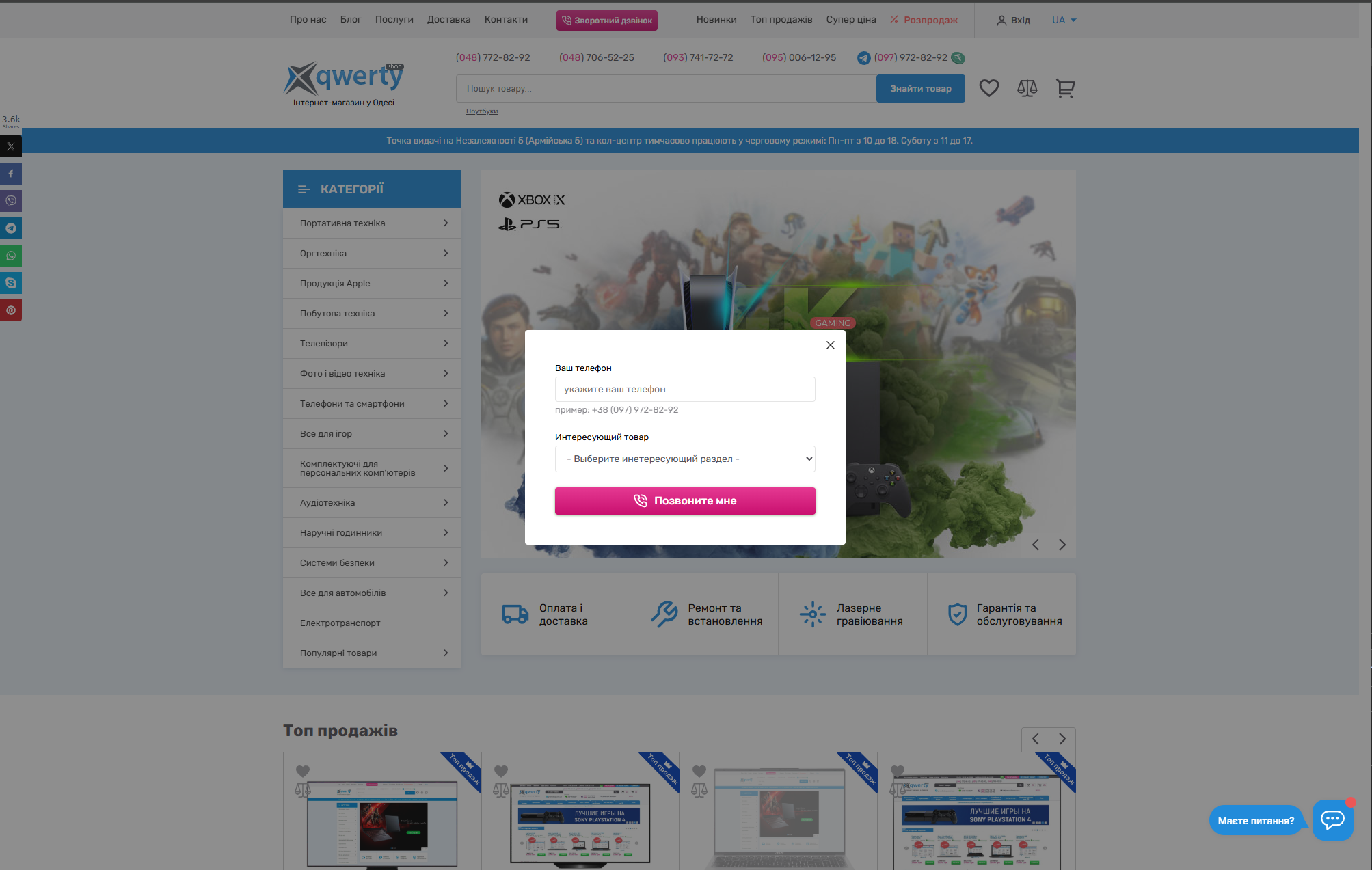 1) Відкрити сторінку https://qwertyshop.ua/ .