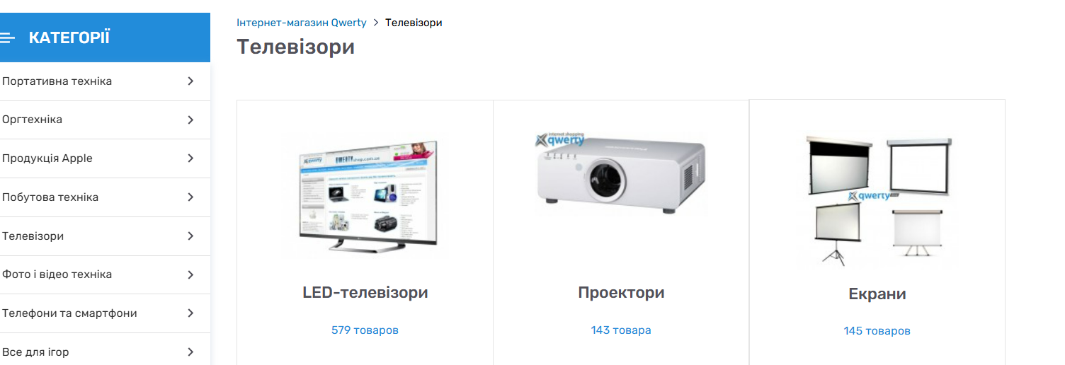 1. Відкрити сторінку https://qwertyshop.ua/televizory