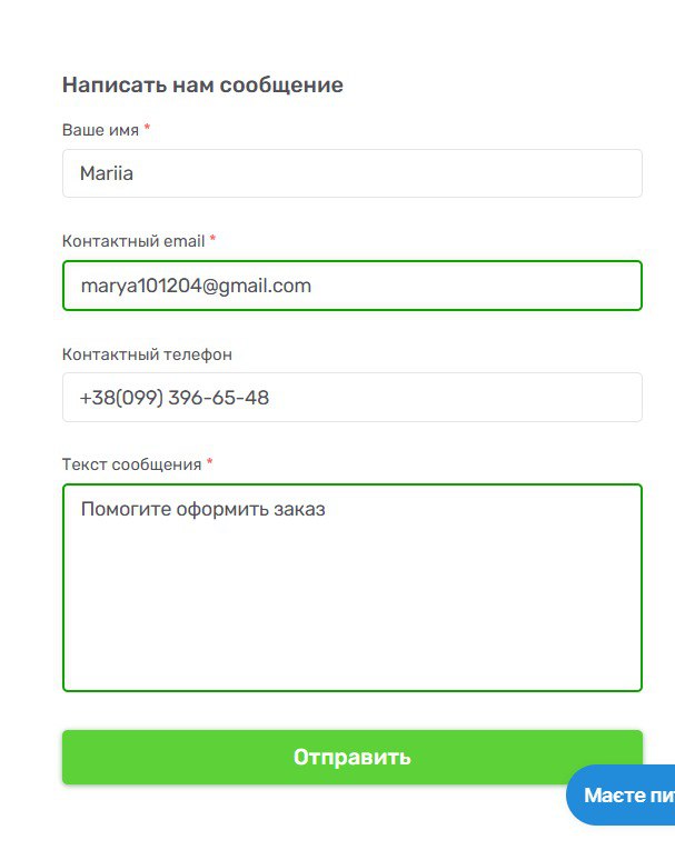 2) Заповнити обов’язкові поля форми зворотного зв’язку валідними даними