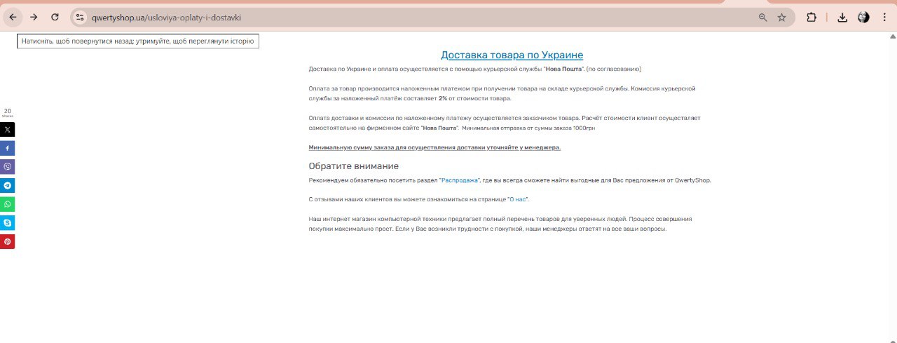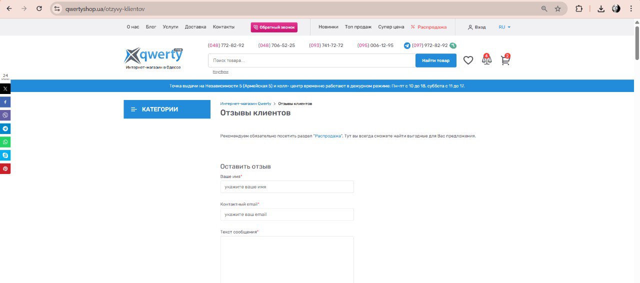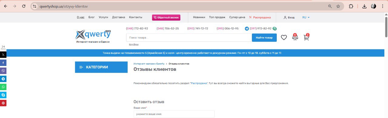 1) Відкрити будь-яку сторінку сайту (наприклад https://qwertyshop.ua/otzyvy-klientov)