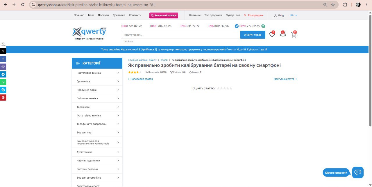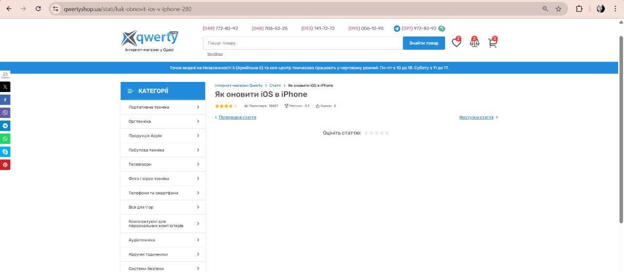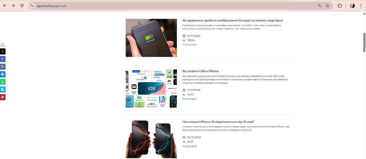 1) Перейти на сторінку зі списком статей https://qwertyshop.ua/stati