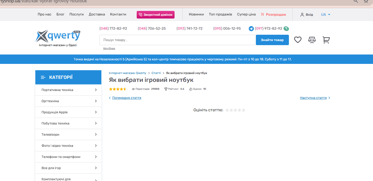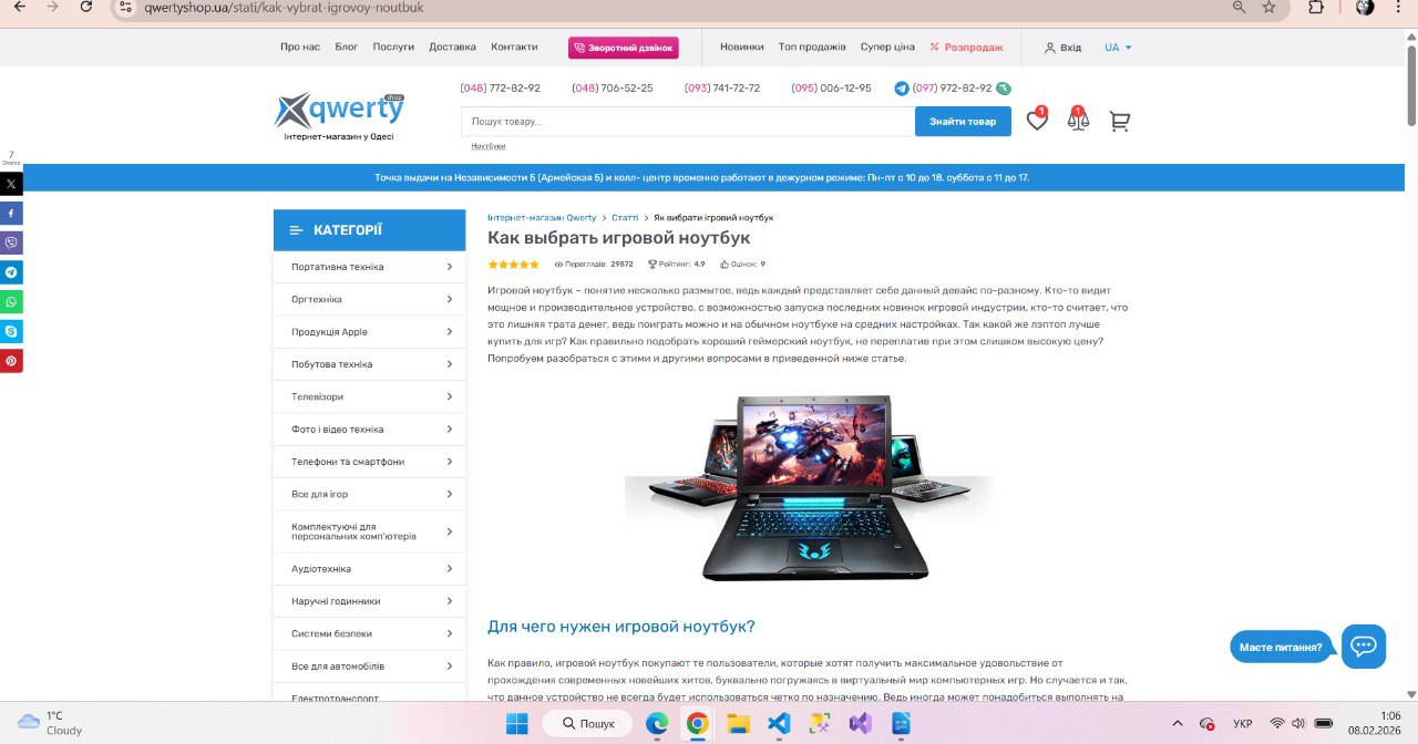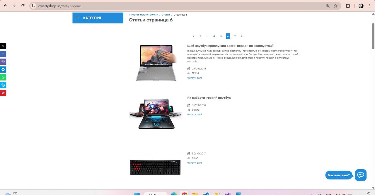 1) Перейти на сторінку зі списком статей, наприклад https://qwertyshop.ua/stati/page=6