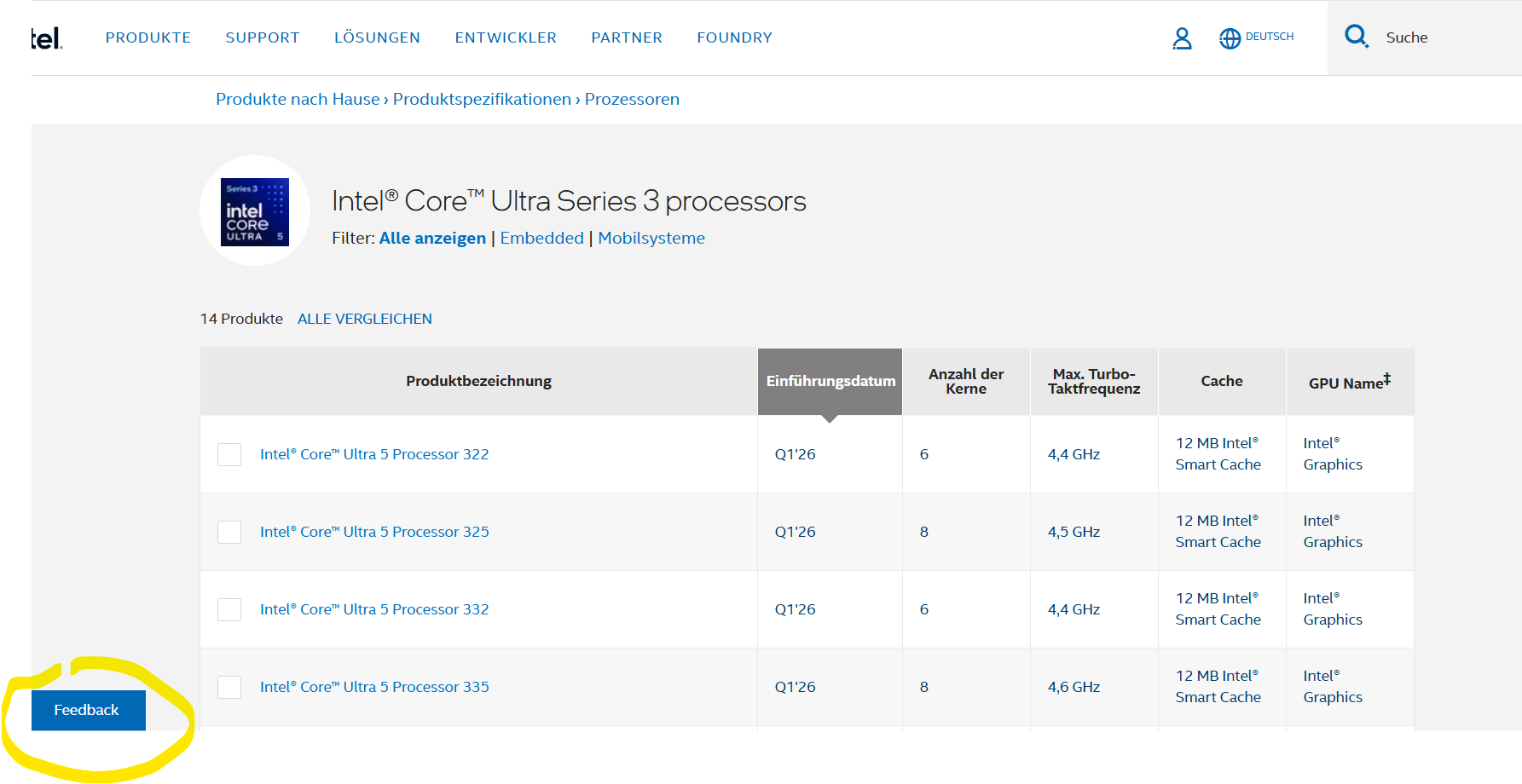 4) Выбрать подраздел Processors / Intel® Core™ Ultra Processors.