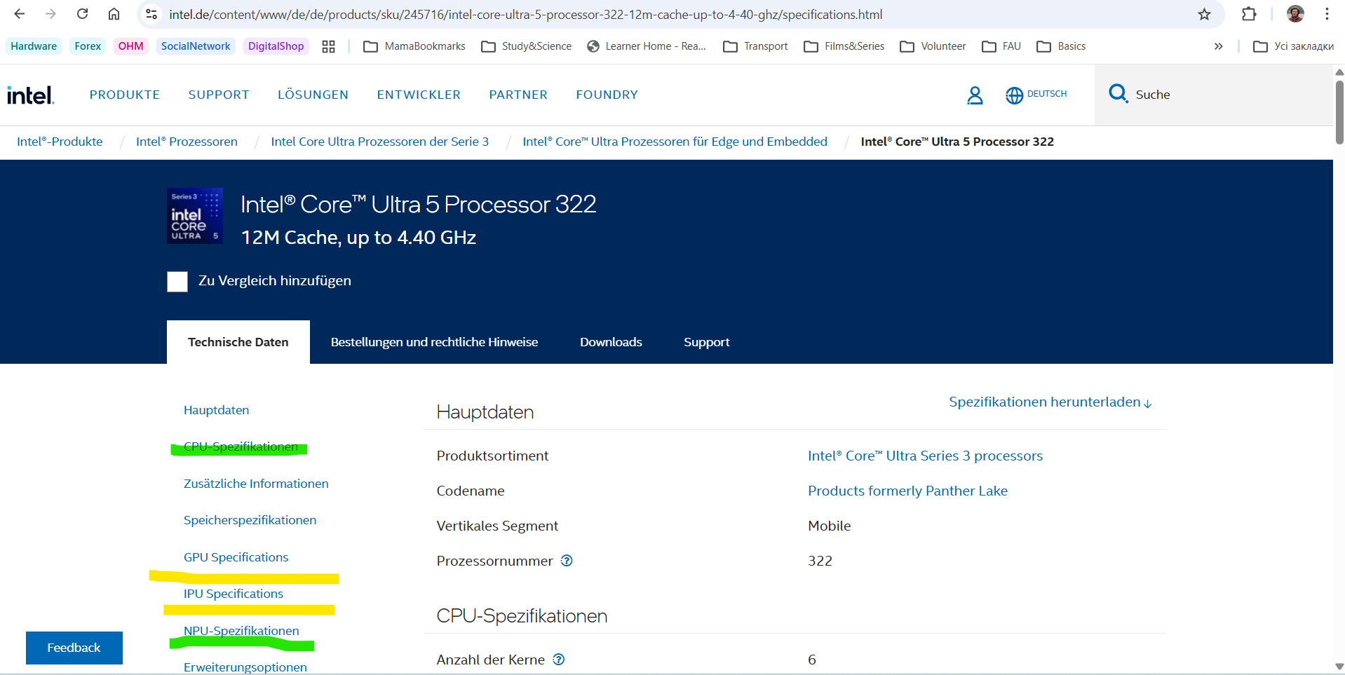 [L10N] Неполная локализация перечня подразделов "Specification" / "Intel® Core™ Ultra 5 Processor 322" на немецкий язык