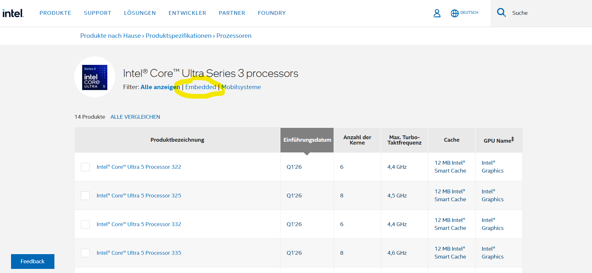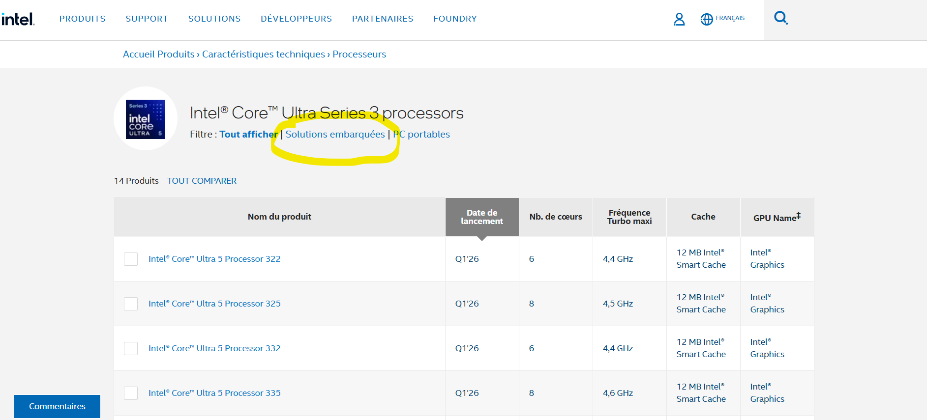 5)Под разделом "Dive into Intel® Core™ Ultra Series 3" выбрать кнопку "Product specs"