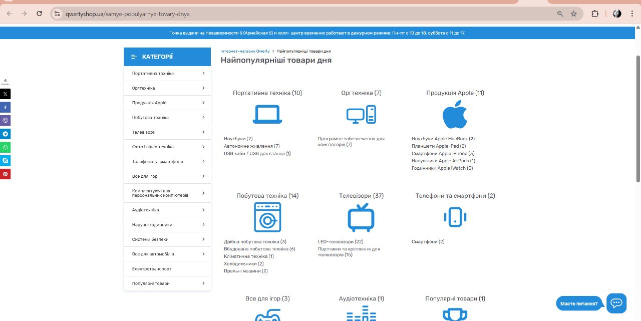 2) Звернути увагу на перелік відображених категорій/товарів https://qwertyshop.ua/populyarnye-tovary