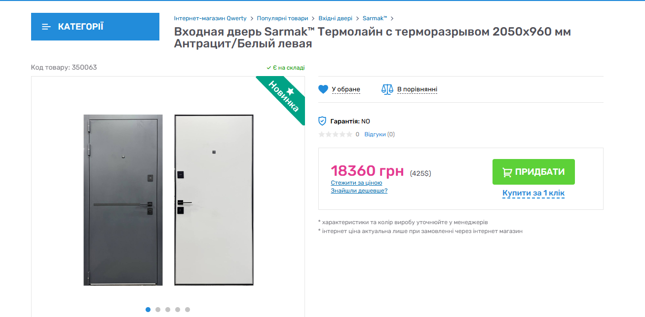1) Перейти на сторінку категорії https://qwertyshop.ua/vhodnye-dveri