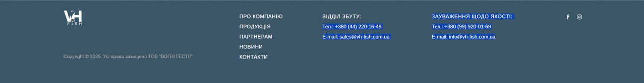 [vh-fish] Не клікабельні номери телефонів та e-mail у футері сайту