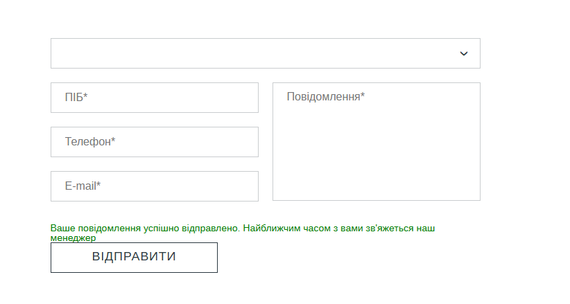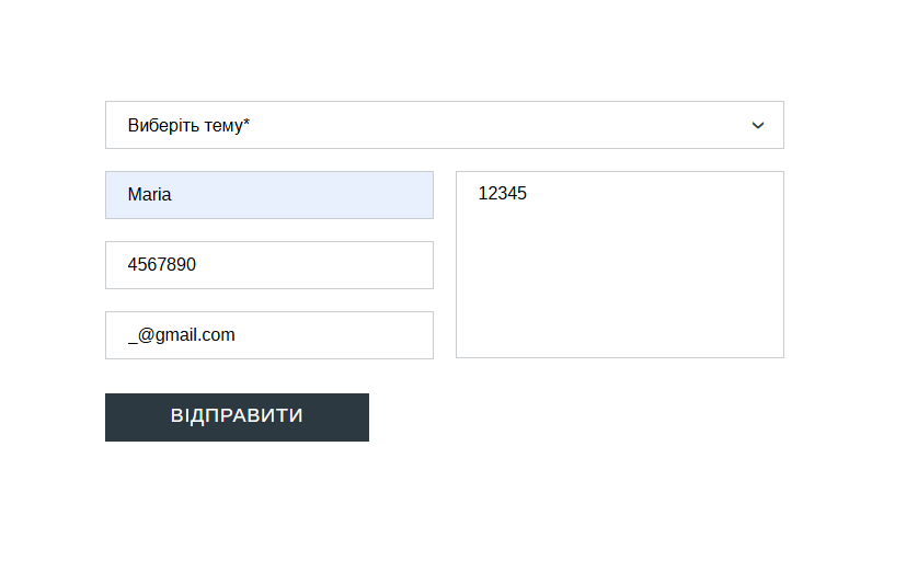 4) Заповнити інші обов'язкові поля (ПІБ, Повідомлення) довільними даними.