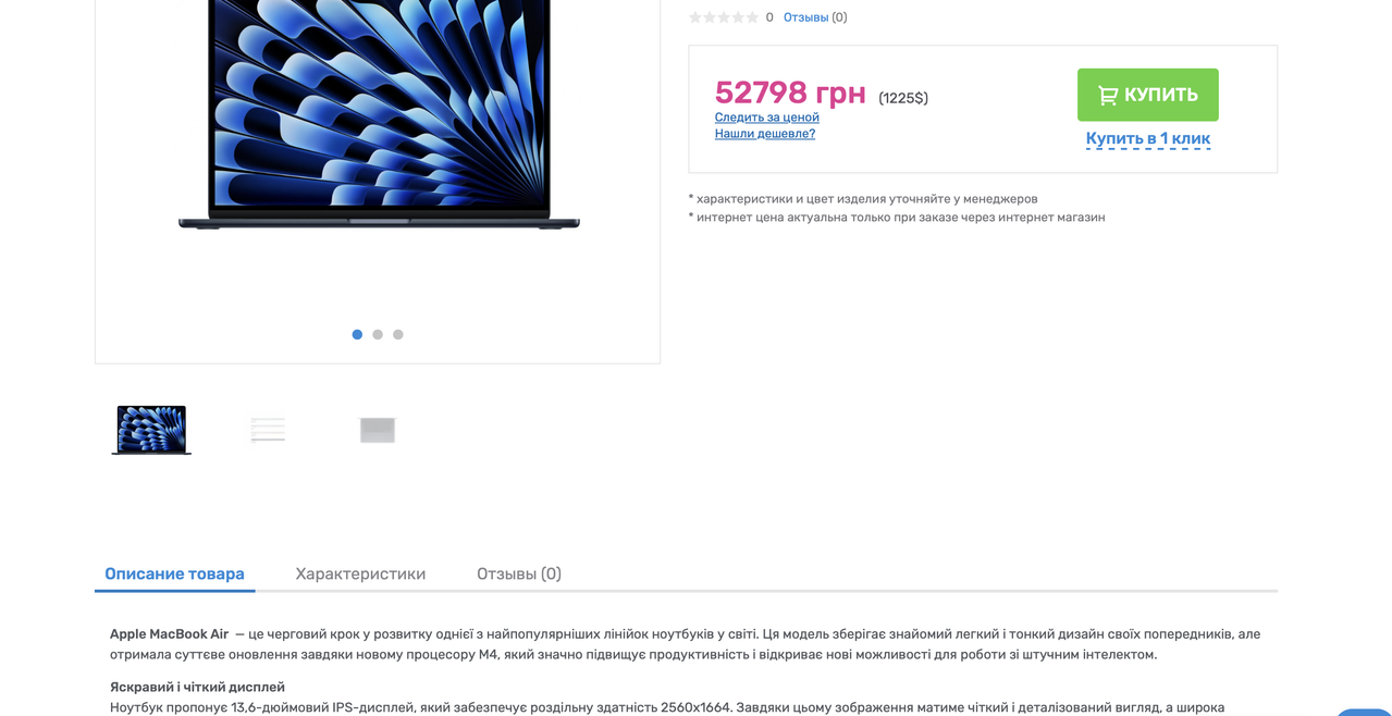 При выбранном русском языке описание товара отображается на украинском языке.