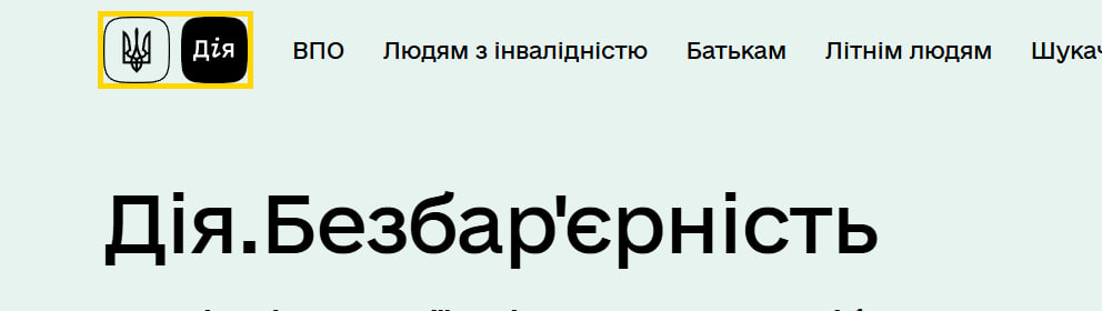 На странице "Дія.Безбар'єрність" кнопка "На головну сторінку" ведет на текущую страницу.
