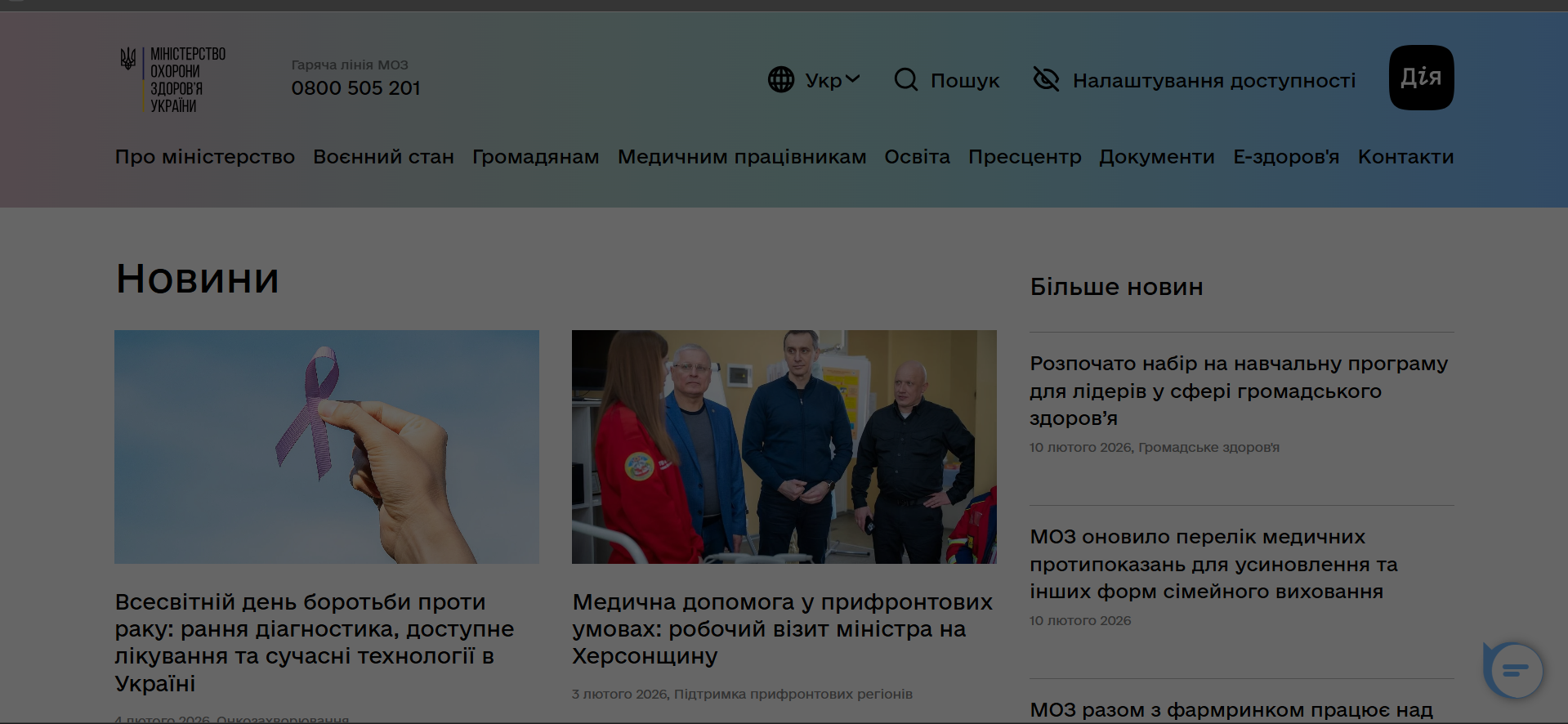 1. Открыть главную страницу сайта https://moz.gov.ua/uk