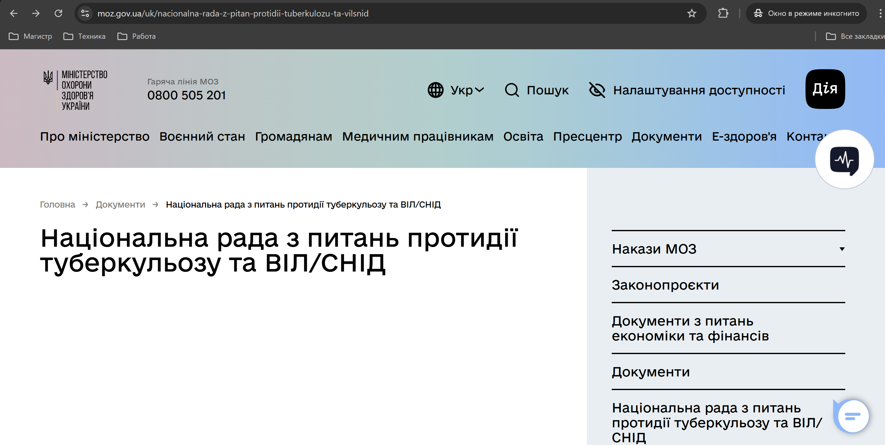 1) Відкрити сторінку https://moz.gov.ua/uk/nacionalna-rada-z-pitan-protidii-tuberkulozu-ta-vilsnid .