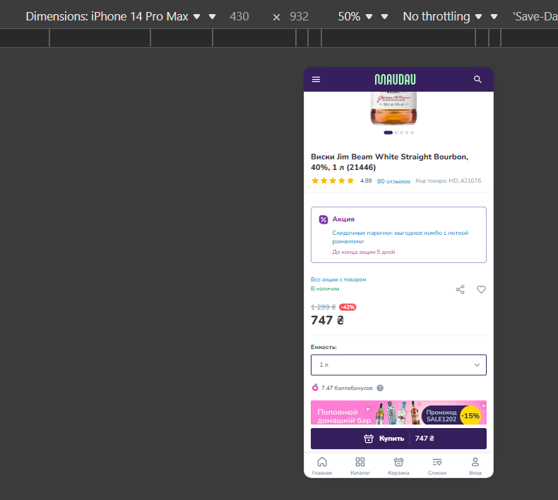 - Нашел товар (Джин Jim Beam White в своем случае).