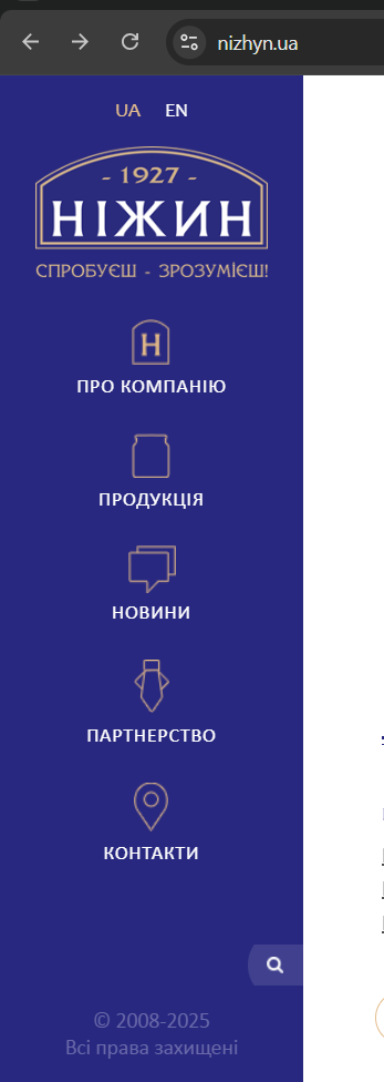 Неактуальный год в блоке копирайта в футере сайта.[Ніжинський консервний завод]