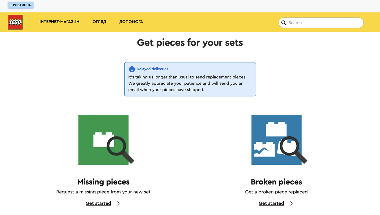 1.Открыть сайт https://www.lego.com/uk-ua