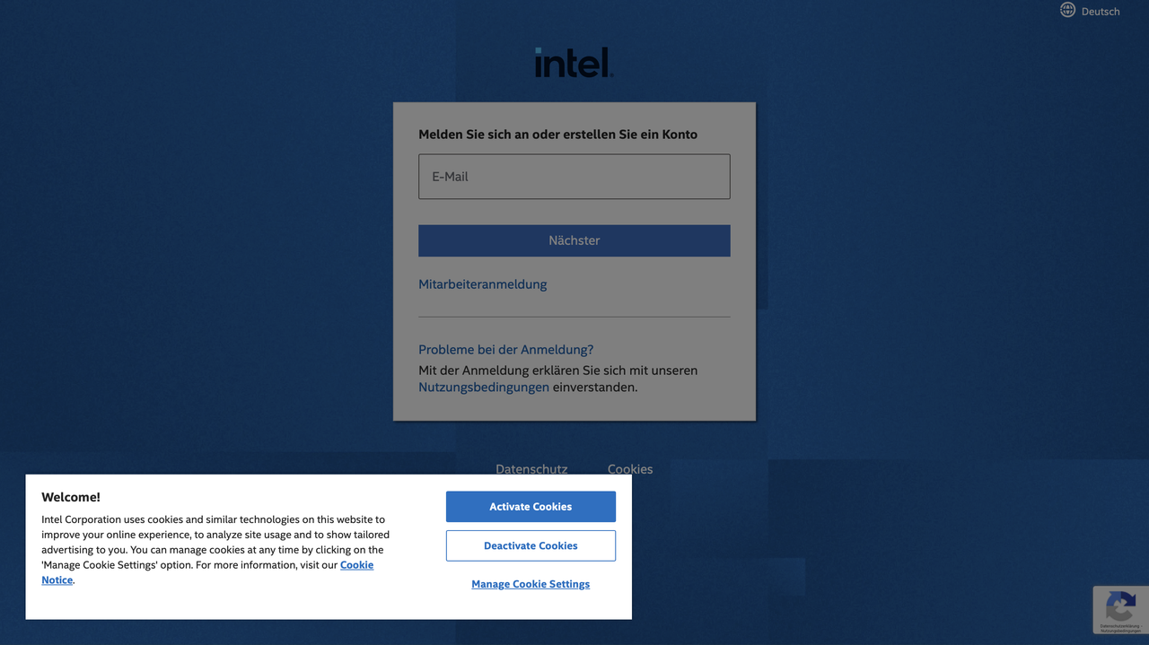 1. Открыть сайт [https://www.intel.de/content/www/de/de/homepage.html](https://www.intel.de/content/www/de/de/homepage.html)