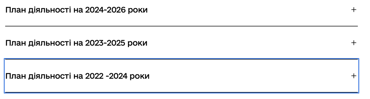 4. Пролистать страницу до блока "План діяльності на 2022 -2024 роки"