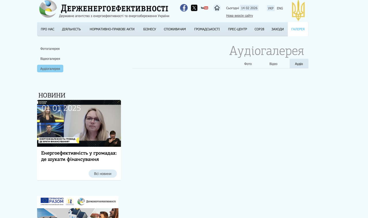 После перехода в раздел "Аудіогалерея" отображается соответствующий аудиоконтент или список аудиофайлов.