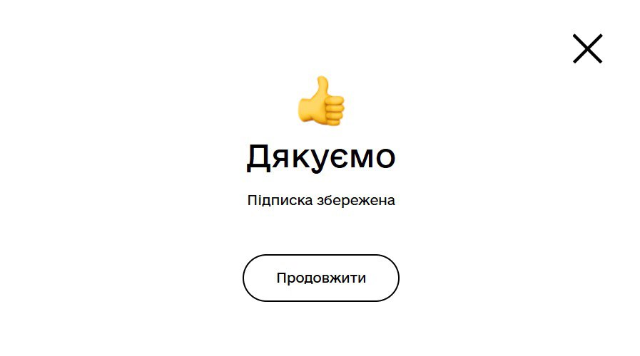 5.Дочекатися повідомлення «Дякуємо. Підписка збережена»