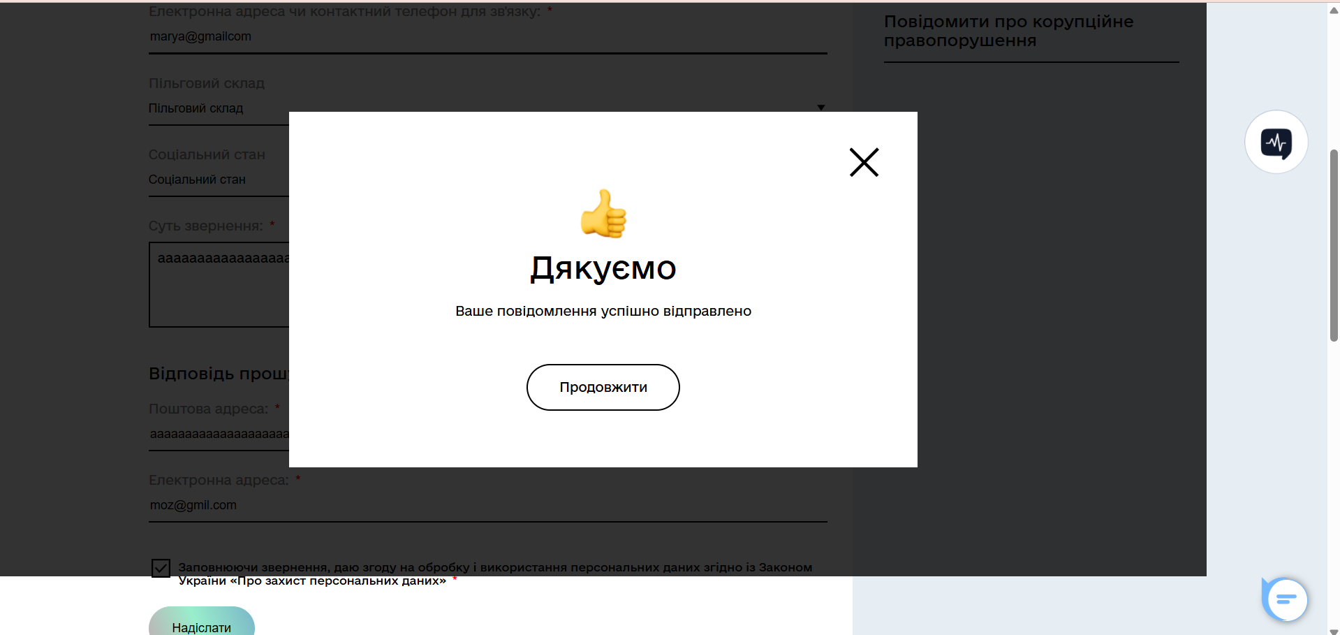 Відсутня валідація обов’язкових полів у формі звернення громадян