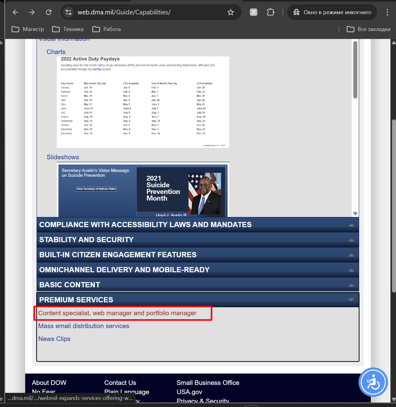 1) Войти на сайт https://web.dma.mil/Guide/Capabilities/.
