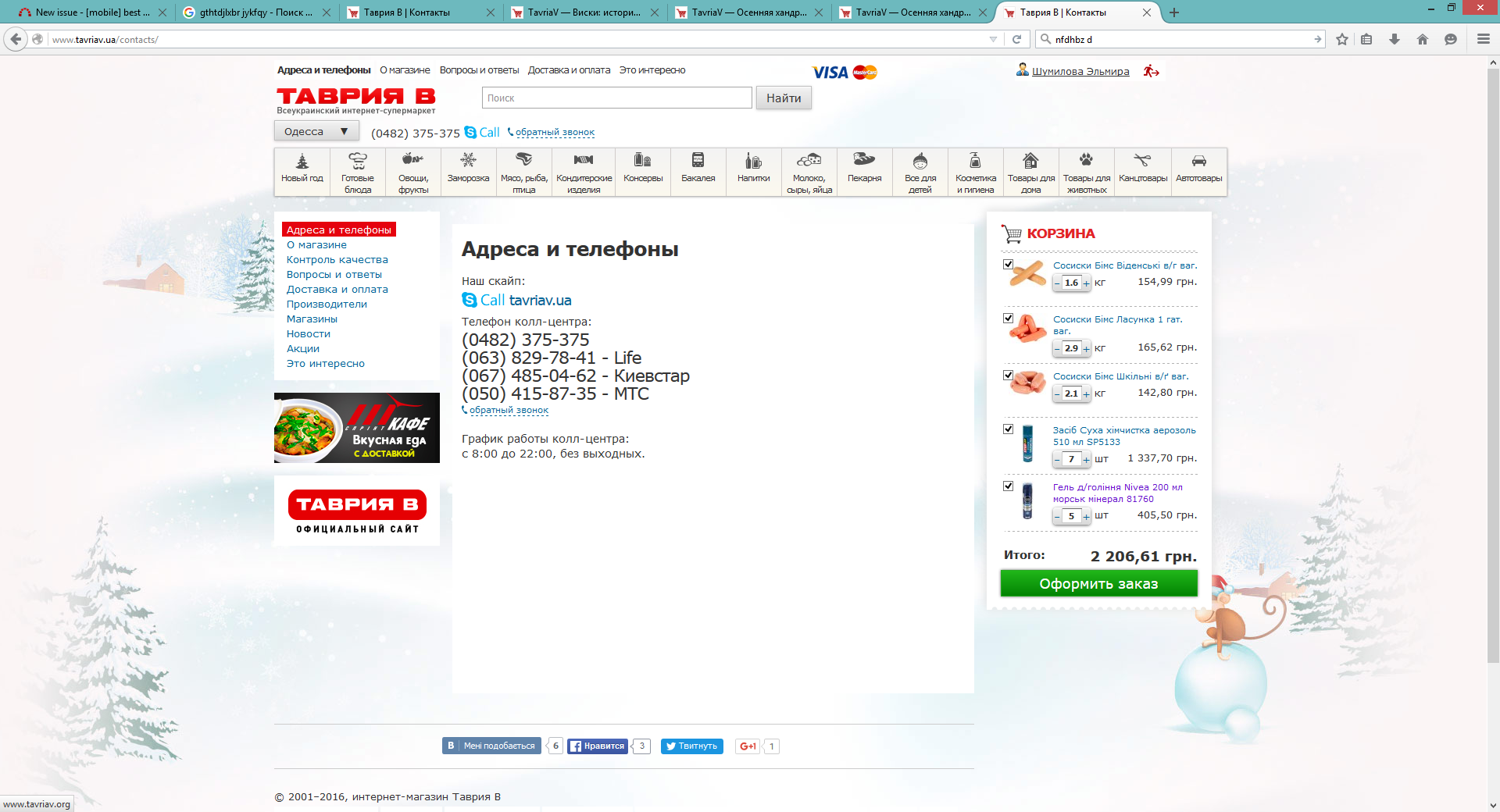 В разделе " Адреса и телефоны" нет адресов магазинов.