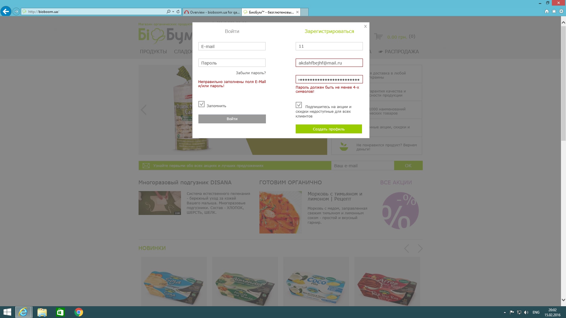 Ошибка при вводе пароля в Разделе "Регистрация"