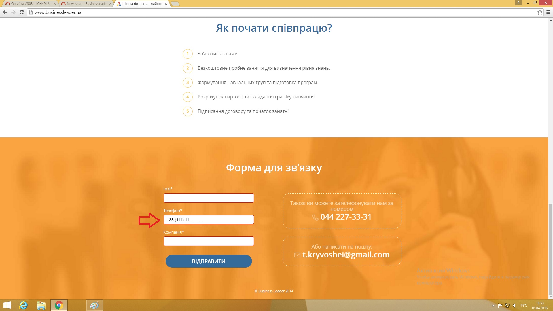 2. Ввести в поле телефонного номера в разделе обратной связи неполный номер (11111).