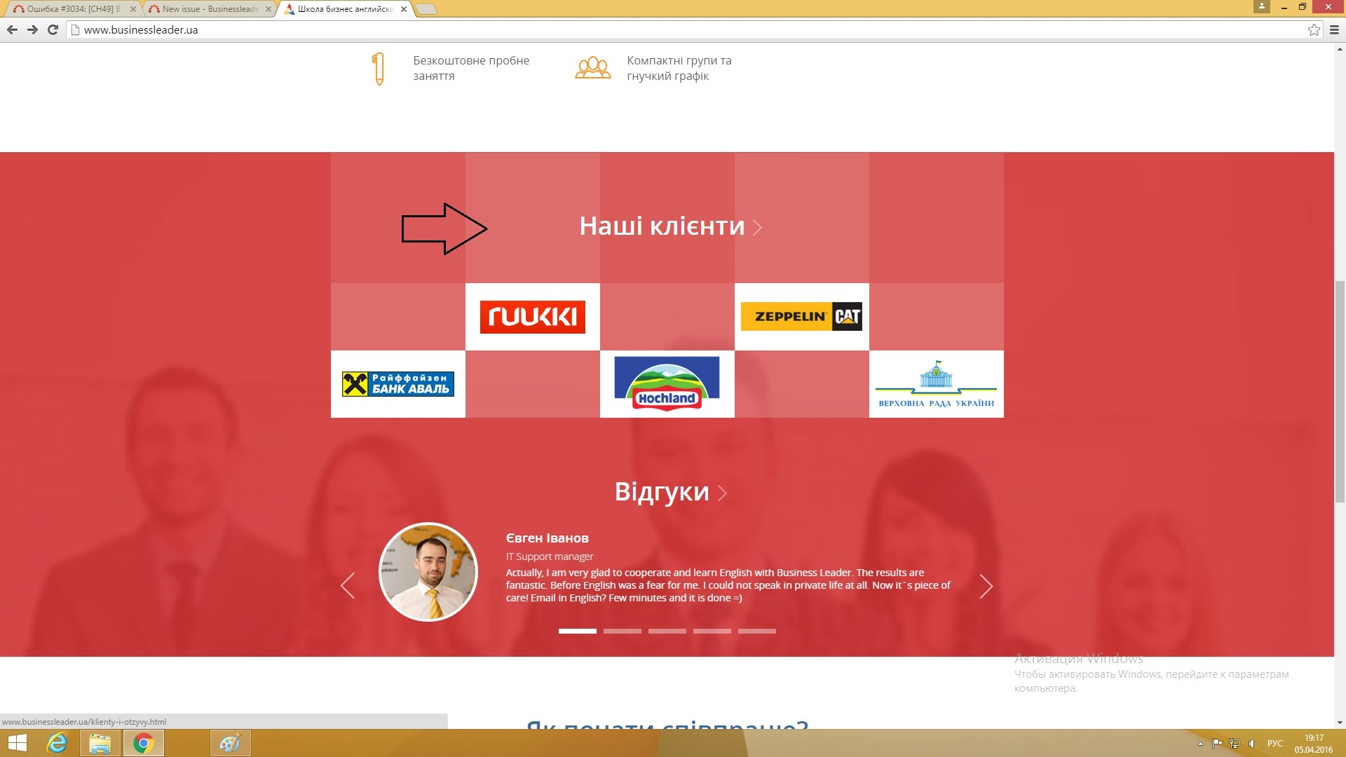 2. Навести курсор мыши чуть левее кноки "Наши клиенты".