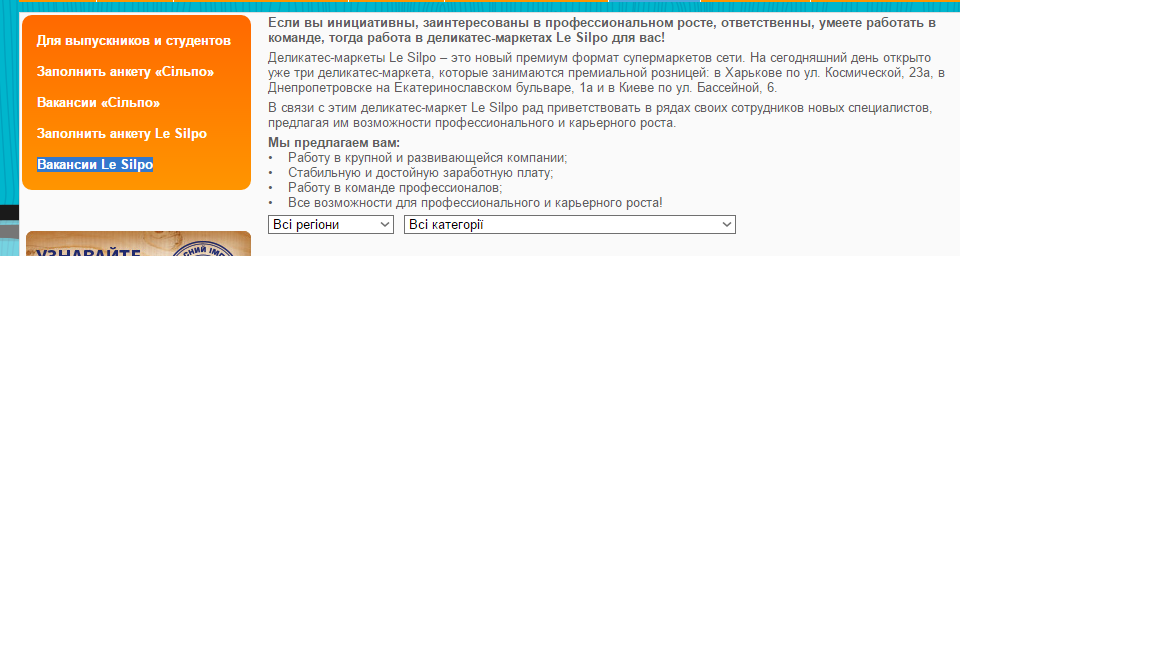 3.Выбрать вкладку Вакансии Le Silpo