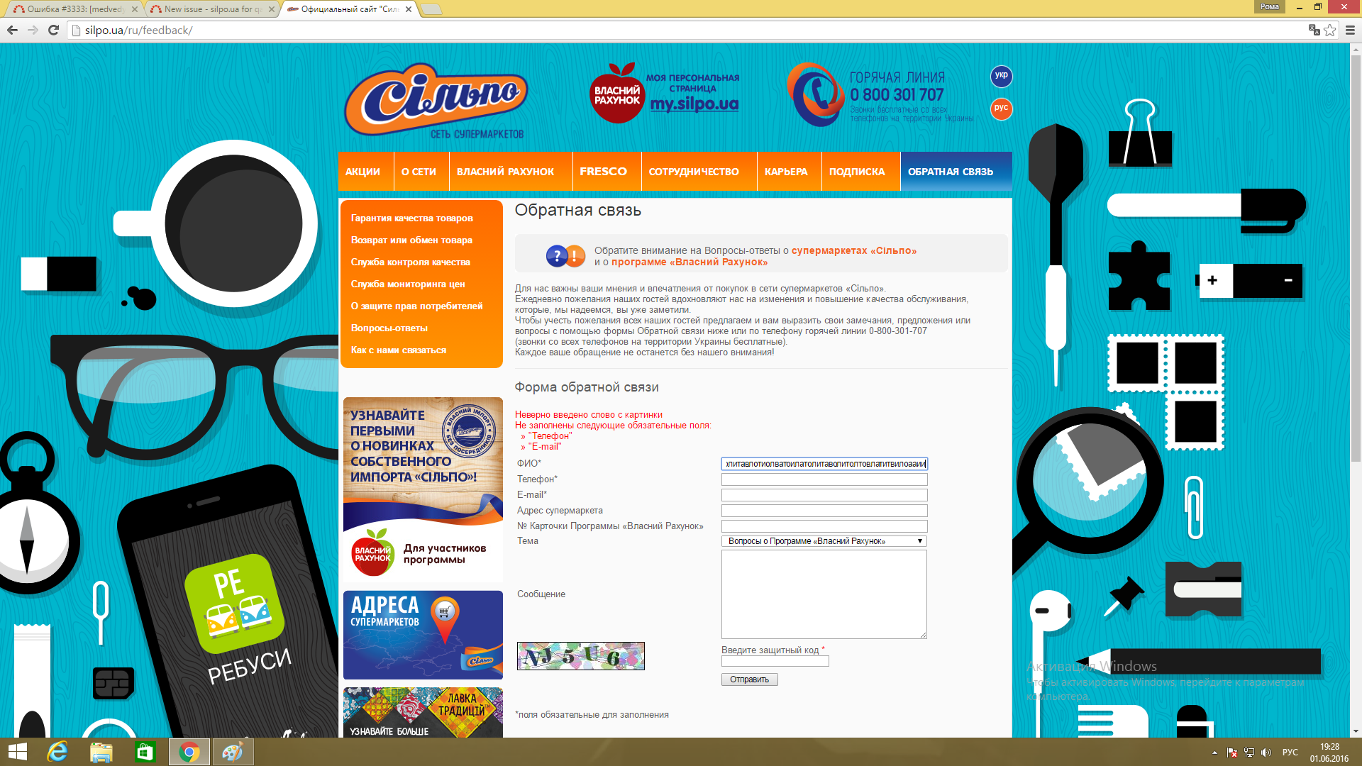 [medvedy] В меню "Обратныя связь" в строку ввода "ФИО" можно вводить неограниченное количество символов