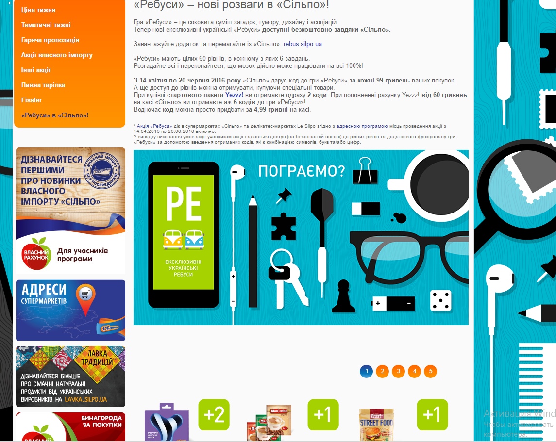 [Quarta] Konovalov При нажатии ссылки в ниспадающем меню "Ребуси в Сiльпо" открыввается окно с Ребусами и товаром, позволяющим получить Коды, но нет информации по правилам получения этих кодов