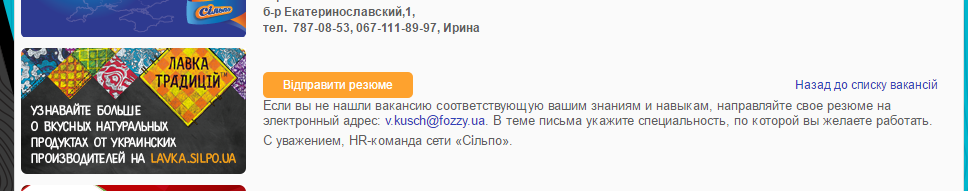 (медведи) [ i18n] Линк "назад до списку вакансiй" в русско-язычной версии сайта, на странице "Вакансии Le Silpo" - на украинском языке.